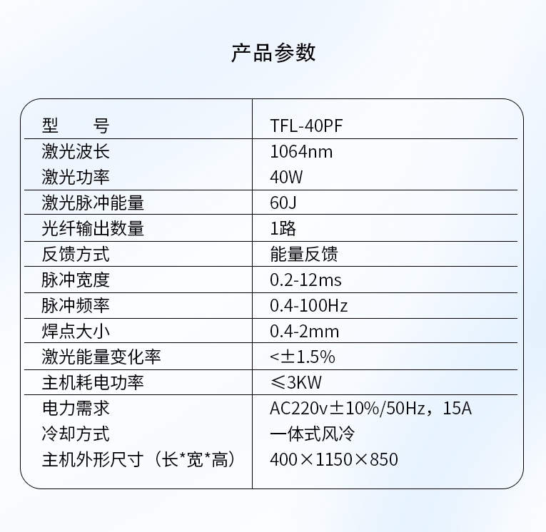 1、該設(shè)備采用升壓電源,不受電網(wǎng)波動影響,同時電源的單點能量輸出能力也更強。
