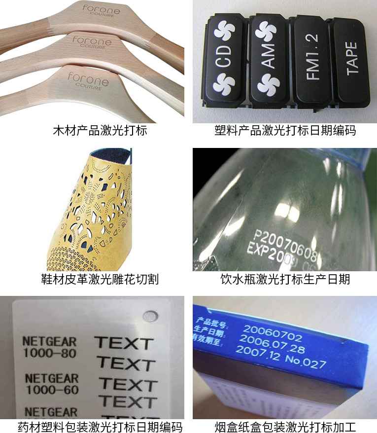 2、應(yīng)用于醫(yī)藥包裝激光打標(biāo)、建筑石材激光打標(biāo)、飲料包裝在線價(jià)格打標(biāo)日期、橡膠制品激光打標(biāo)、非金屬工藝禮品激光打標(biāo)、皮革切割打標(biāo)加工等行業(yè)。